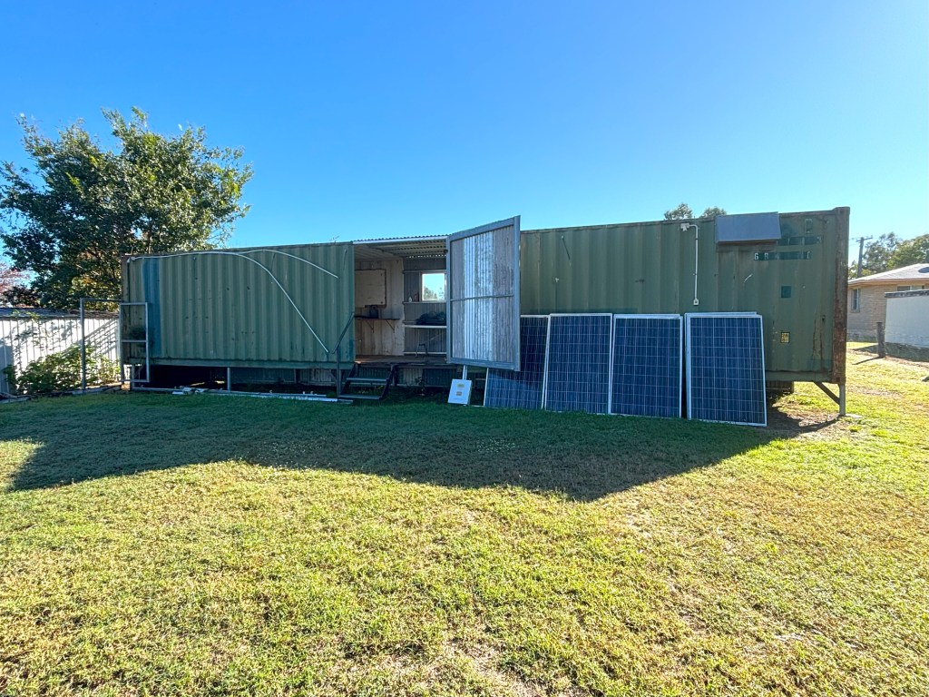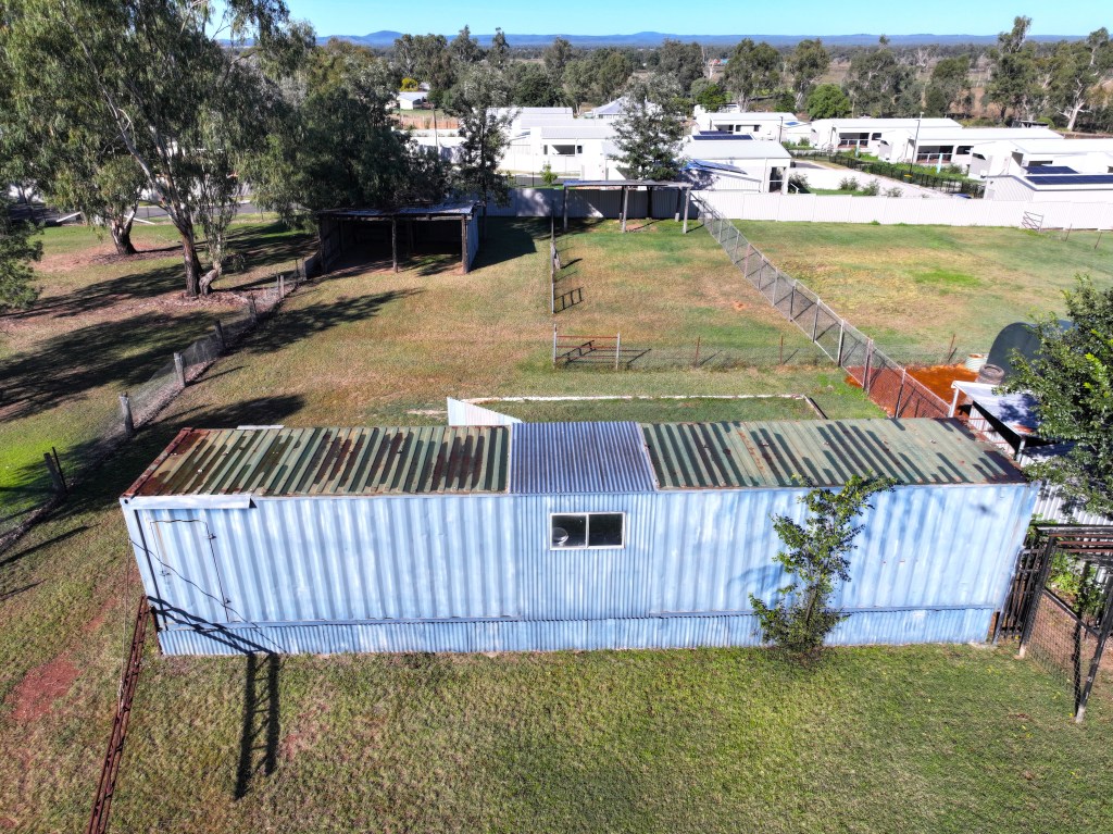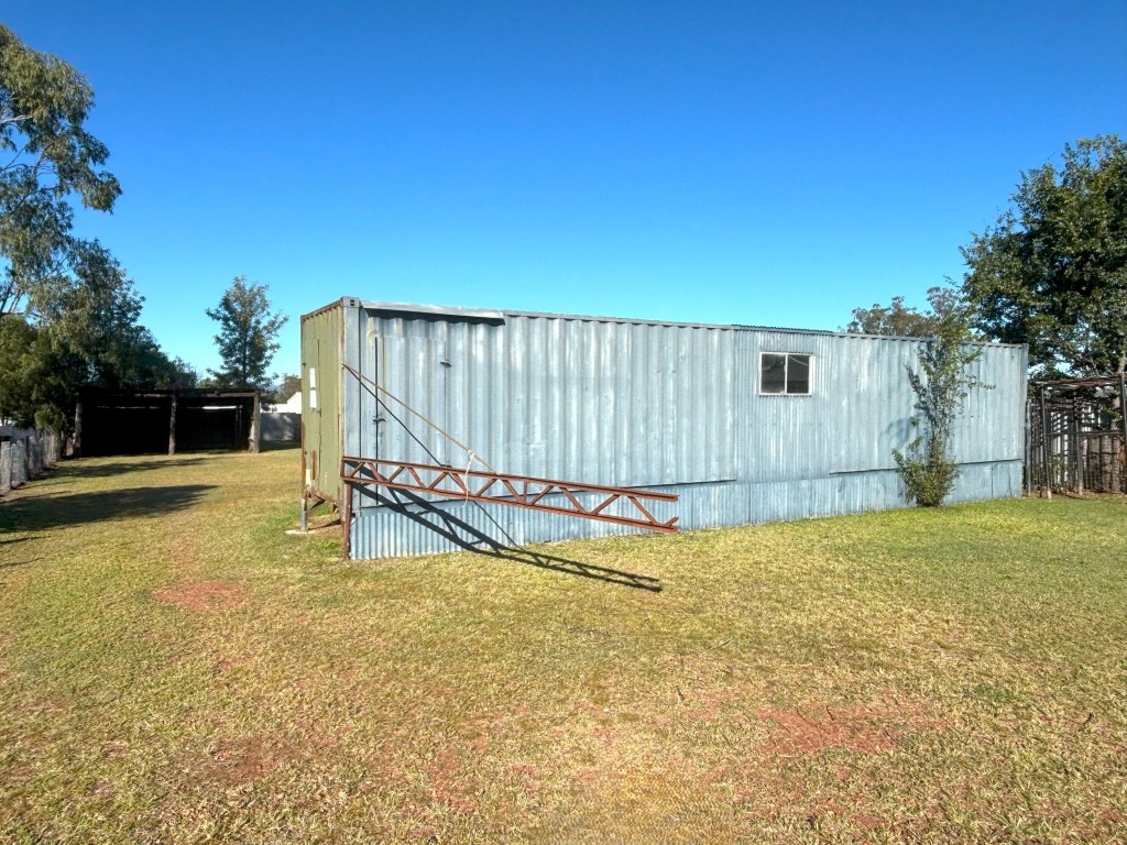 - Shipping container on stumps positioned centrally on the block