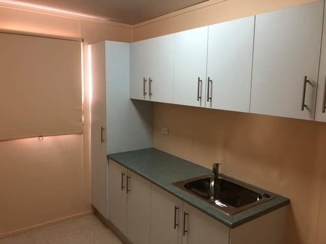 Kitchen has plenty of storage, an electric cooktop and electric oven.