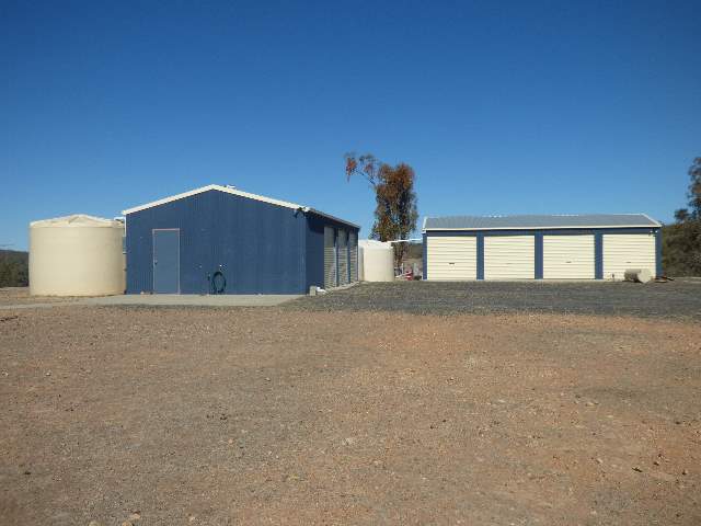 Outside there are two large colourbond lockable sheds with workshop and coldroom, and another two machinery/feed sheds plus steel cattle and sheep yards and grain silo.