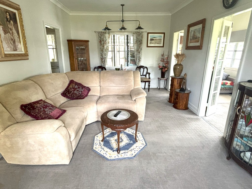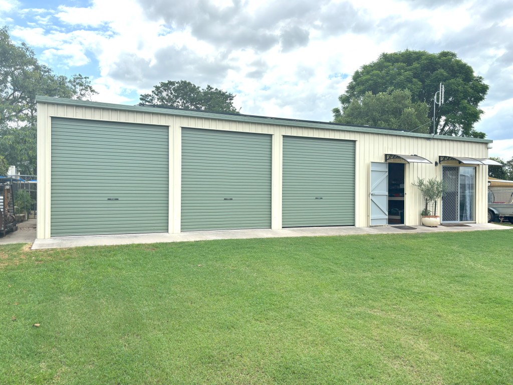 The meticulously maintained lawns and gardens further enhance the appeal of this property, providing a serene backdrop for outdoor relaxation. At the back of the property lies a large shed with 3 roller doors, concrete floor and connected power which offers ample space for both storage and a work area. The shed also contains a small living quarters (granny flat) with a kitchenette and bathroom, providing additional flexibility and convenience.
