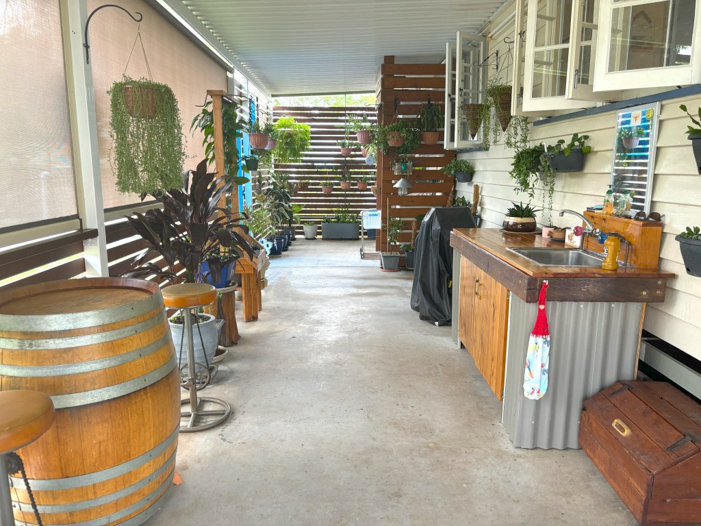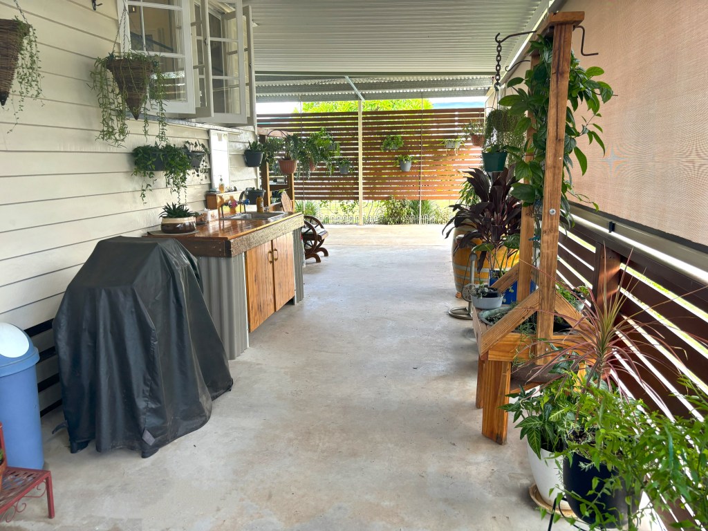 Step outside, and you’ll discover an aesthetically designed concreted outdoor area, complete with roller blinds to effortlessly control the afternoon sun, creating the perfect space for alfresco dining and entertaining.