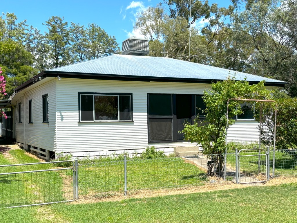 Step inside to discover polished wooden floorboards throughout, a modern kitchen, and two inviting living areas. The home is designed for year-round comfort with evaporative cooling, ceiling fans, and a cozy wood heater for those chilly evenings.