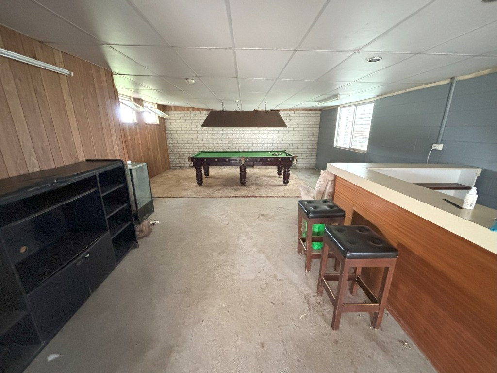 The generously sized bathroom includes a corner shower/bath and toilet, with an additional toilet conveniently located near the laundry. Entertain with ease in the large undercover outdoor area or the enclosed rumpus room, complete with a pool table and built-in bar.