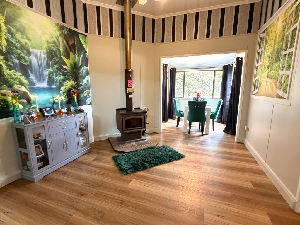 Outside, a single-bay shed with a concrete floor houses the laundry plus an additional shower room. The home is complemented by established gardens, various fruit trees, a solar system and a water tank, supporting an eco-friendly lifestyle. Relax on the charming front verandah or entertain on the concrete patio at the rear, enjoying the peaceful surrounds and open views.