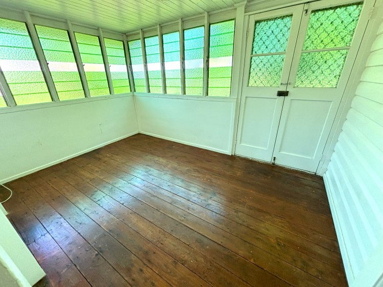 The kitchen, equipped with all the essentials, seamlessly flows into the dining area, which benefits from an abundance of natural light, making it an ideal spot for enjoying meals with family and friends. Both bedrooms offer comfortable retreats, with the spacious main bedroom featuring an aesthetic bay window that overlooks the front yard. Both bedrooms are equipped with ceiling fans, ensuring restful nights all year round. A mudroom/sunroom at the front entrance provides a welcoming space for guests, while a large closed-in sleepout offers versatility to suit your needs.
