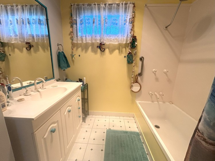 Step inside to discover a well-appointed interior featuring a kitchen equipped with modern amenities, including a dishwasher, and abundant natural light pouring through large windows. All bedrooms are carpeted with the addition of ceiling fans in two of the rooms. The master bedroom is equipped with an air conditioner to ensure you stay cool in the warmer months. The centrally located living room offers views of the surrounding landscape, complemented by an air conditioner and a fireplace with a circulation motor, perfect for cozy evenings.