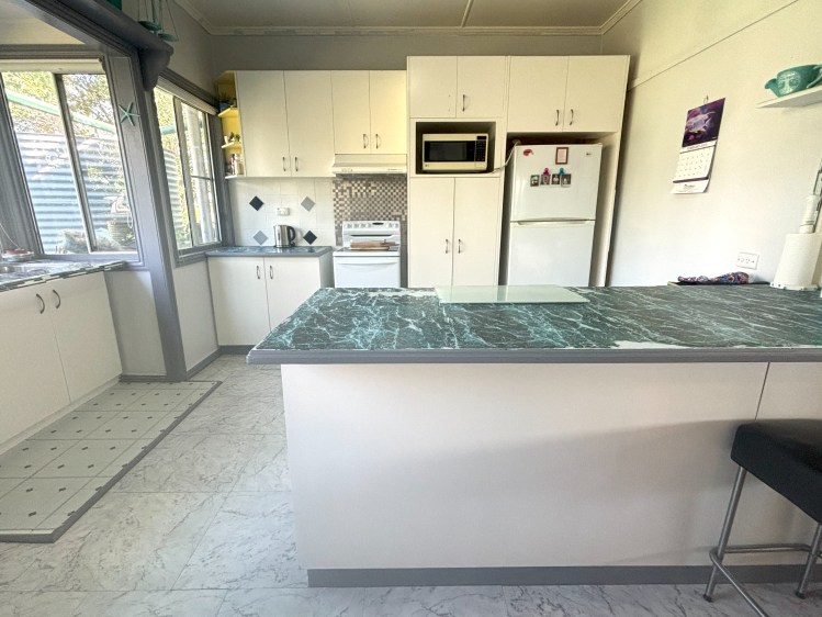 Outside, the expansive half-acre yard beckons with well-maintained gardens and a host of amenities, including a large 3-bay shed with two roller doors, concrete floor and connected power. The property also has a rainwater tank, carport, two garden sheds, and a versatile single-room storage area shed. Enjoy leisurely moments on the small front deck, ideal for savouring morning coffees or admiring breathtaking sunsets.