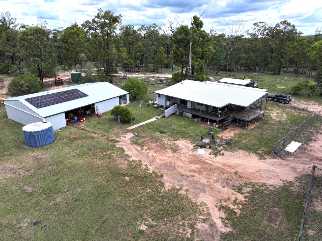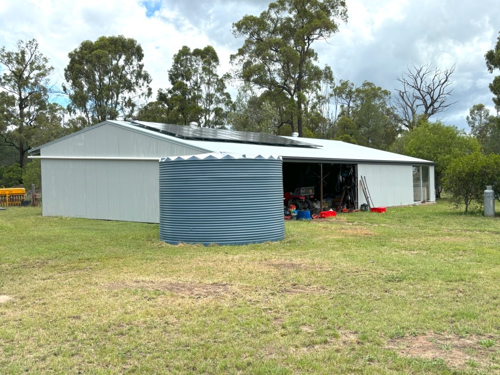 A 19m by 10m shed, complete with a workshop area and laundry, provides ample space for various endeavors. Water is plentiful with 2x 22000L and 1x 5000L poly tanks, a working bore, and the enchanting presence of Brush Creek and Magee Creek, alongside other natural gullies and water courses.