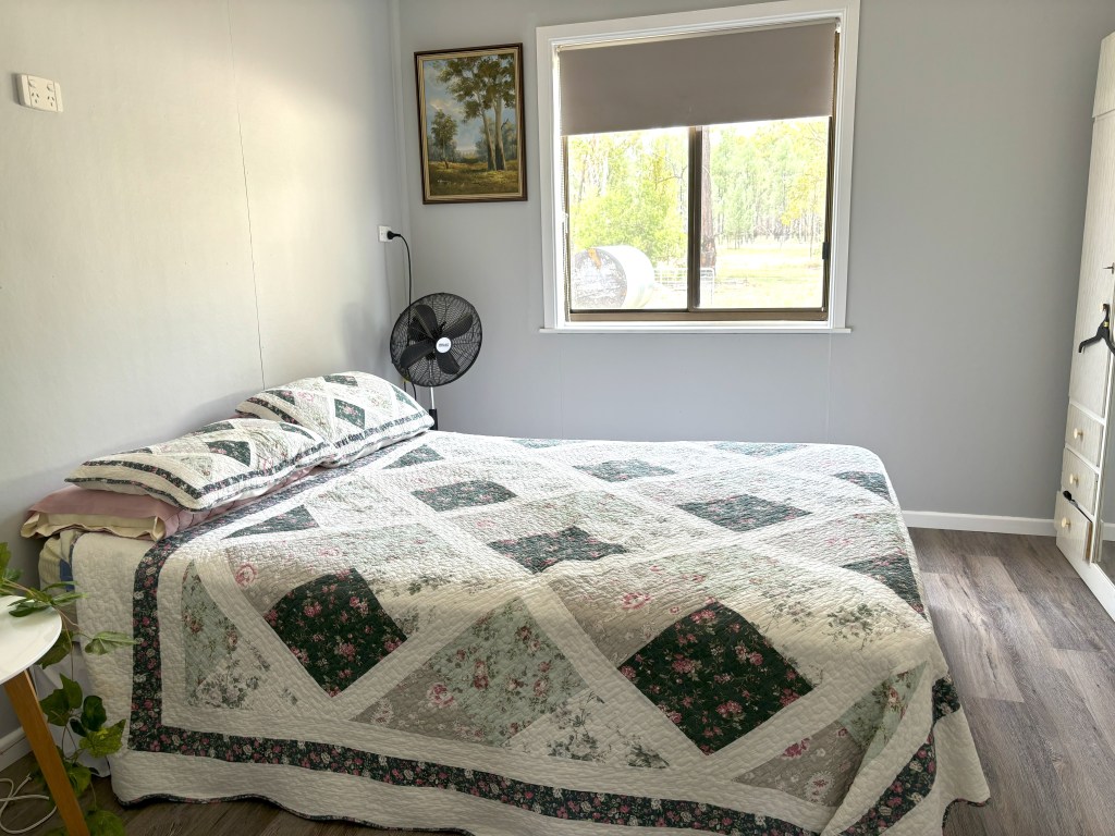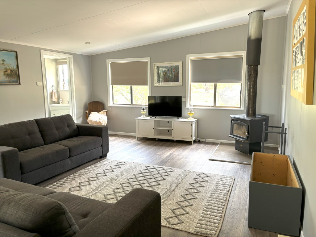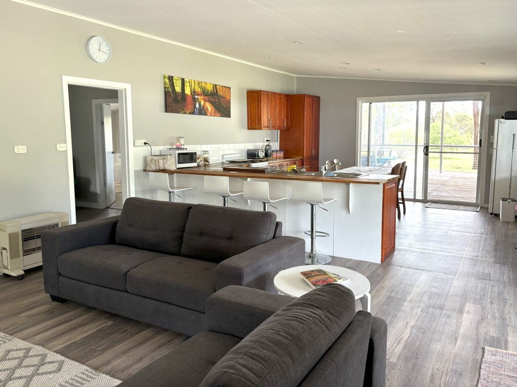 Nestled on the property is a charming 3-bedroom, 2-bathroom home featuring an open-plan living design, adorned with a wood heater to keep you warm on cozy evenings. The bedrooms are equipped with ceiling fans, ensuring comfort during the warmer seasons. Step outside onto the wrap-around verandah, enveloping three sides of the home, and indulge in the tranquility of the surroundings. Additionally, a spacious undercover deck provides the perfect spot for outdoor gatherings.